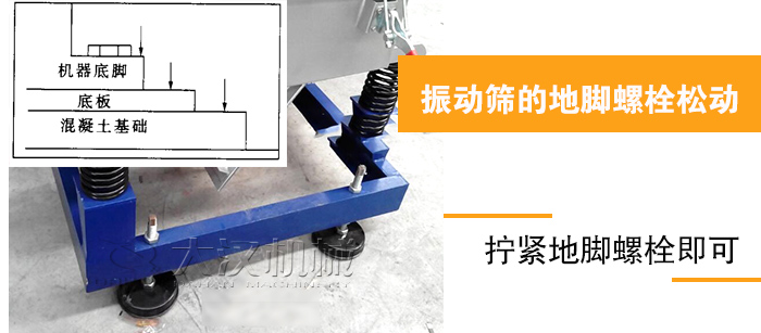 振動(dòng)篩在進(jìn)行分級(jí)除雜的過(guò)程中需要巨大的激振力進(jìn)行帶動(dòng),為了保持振動(dòng)篩選機(jī)的穩(wěn)定性,通常會(huì)用地腳螺栓將其和地面進(jìn)行連接穩(wěn)固,由于篩機(jī)是在振動(dòng)電機(jī)作用下工作,篩機(jī)本身就會(huì)產(chǎn)生一定的機(jī)械振動(dòng)。長(zhǎng)時(shí)間連續(xù)作業(yè)會(huì)使固定底座的地腳螺栓松動(dòng),促使振動(dòng)波通過(guò)底座傳導(dǎo)到地面,再生振動(dòng)