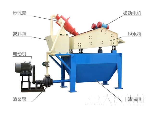 2、濃縮型水力旋流器+高頻率脫水篩,濃度達85%以上,成品回收率增加,處理量高達70-100t/h。